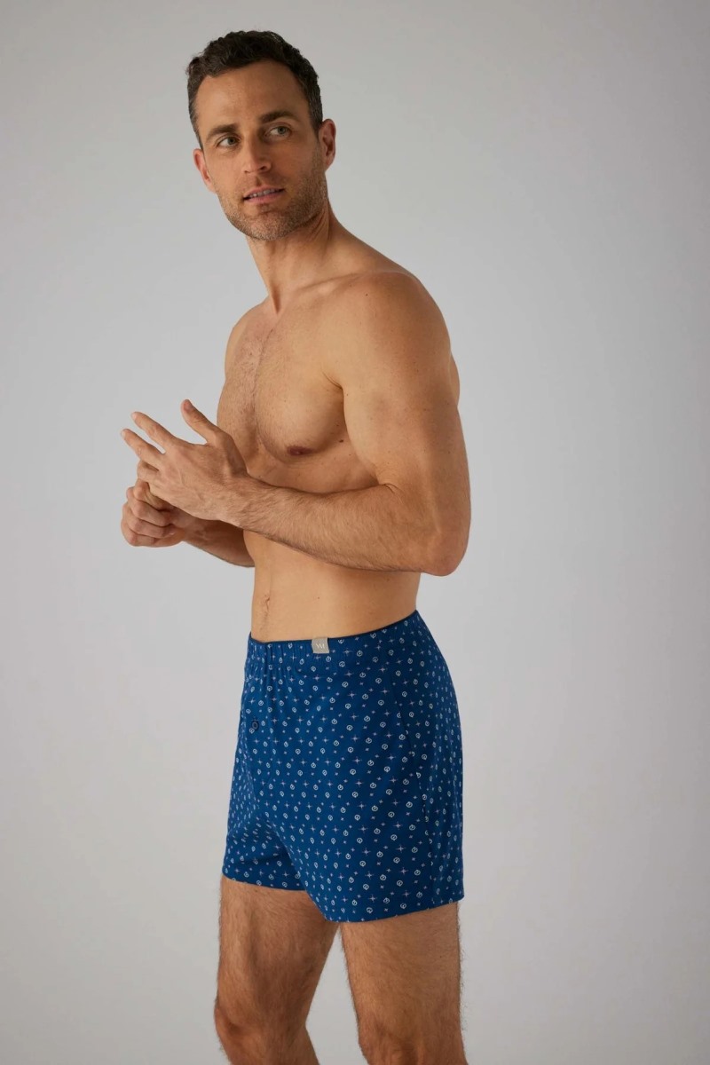 Мужские свободные боксеры с гульфиком. Боксеры из натурального хлопка, обеспечивают мягкое и комфортное ощущение при контакте с кожей. Конструкция боксеров закрывает большую часть бедра, обеспечивая больший комфорт и свободу движений. Эластичная резинка на талии мягкая и плотно прилегает к телу, обеспечивая удобную посадку и отсутствие раздражения кожи. Спереди застежка на пуговицу.
