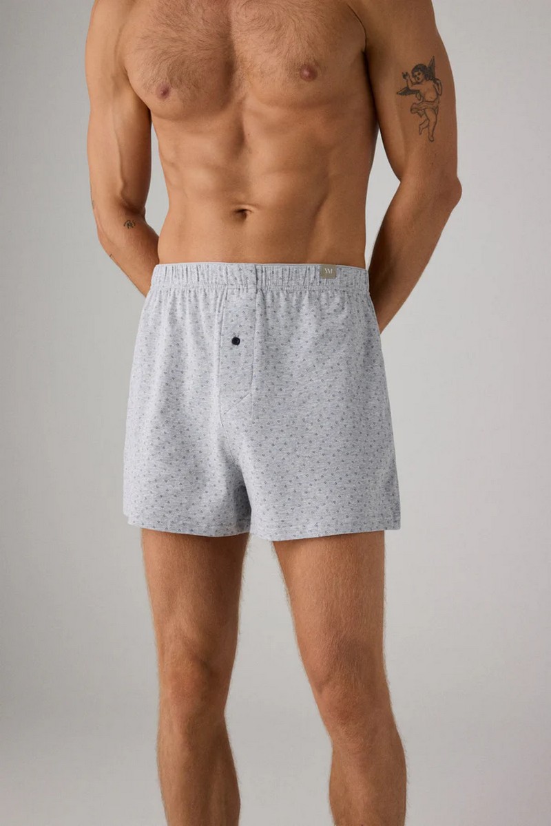 Трусы-боксеры с разрезом и геометрическим принтом. Эти трусы, изготовленные из натурального хлопка, обладают мягкостью и воздухопроницаемостью для комфортного ношения в течение всего дня. Геометрический принт добавляет нотку современности и стиля, а разрез обеспечивает комфорт и легкость движений. Идеально подходит для тех, кто ищет характерный и функциональный дизайн в своем повседневном гардеробе.