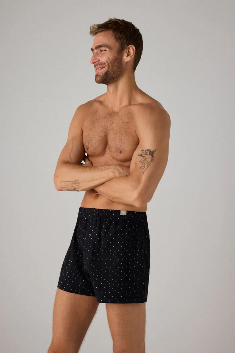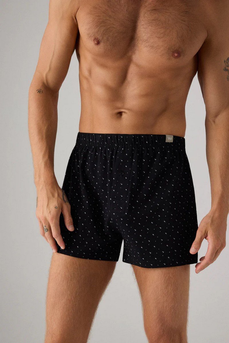 Боксеры с разрезом и классическим принтом. Эти трусы, изготовленные из натурального хлопка, обладают мягкостью и воздухопроницаемостью для комфортного ношения в течение всего дня. Классический принт добавляет нотку вневременной элегантности, а разрез обеспечивает комфорт и легкость движений. Идеально подходят для тех, кто ценит комфорт и традиционный стиль в своем повседневном гардеробе.