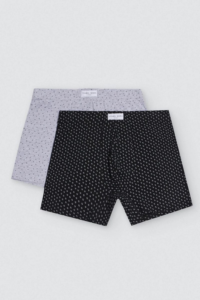 Облегающие мужские боксеры. Набор из 2 трусов с принтом. Включает по одному каждого цвета. Изготовлены из натурального хлопка с добавлением эластана. Эластичная резинка. Логотип Ysabel Mora.