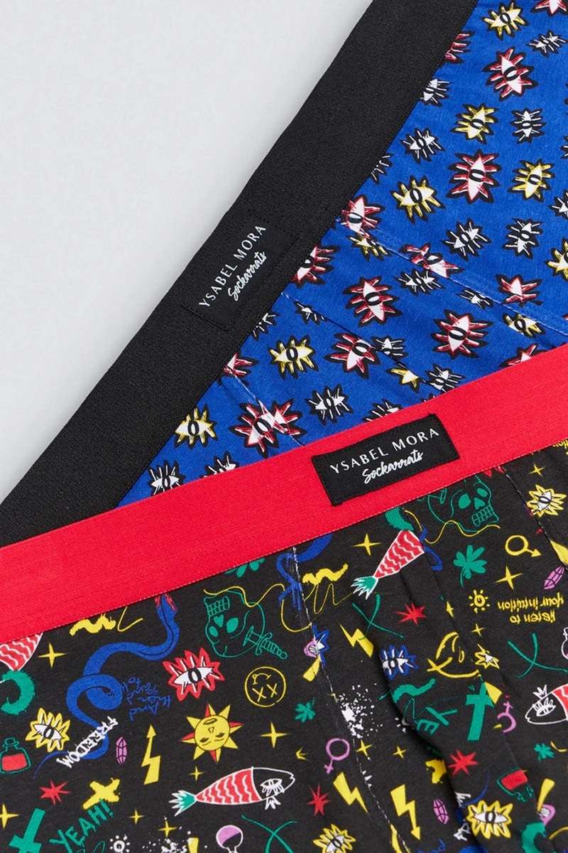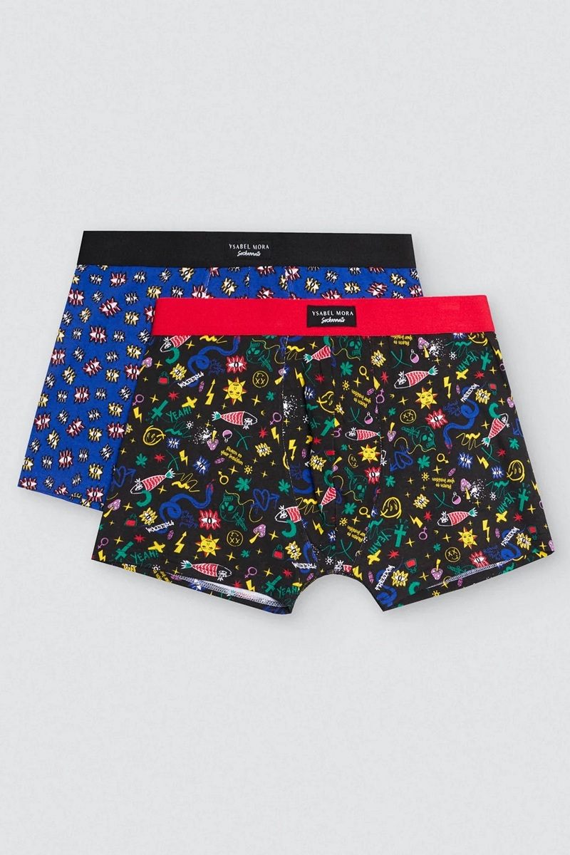 Облегающие мужские боксеры. Набор из 2 трусов с принтом. Включает по одному каждого цвета. Изготовлены из натурального хлопка с добавлением эластана. Эластичная резинка. Логотип Ysabel Mora.