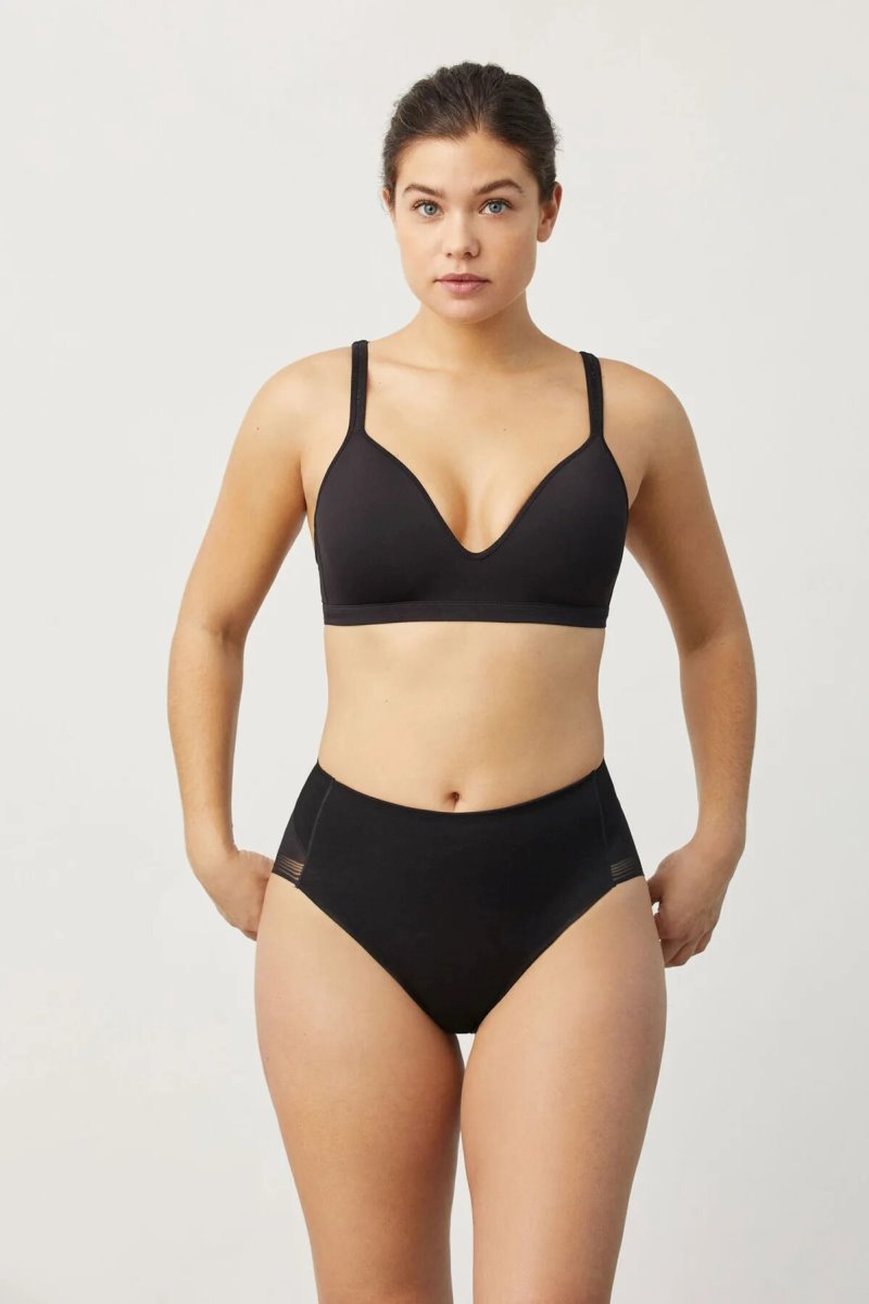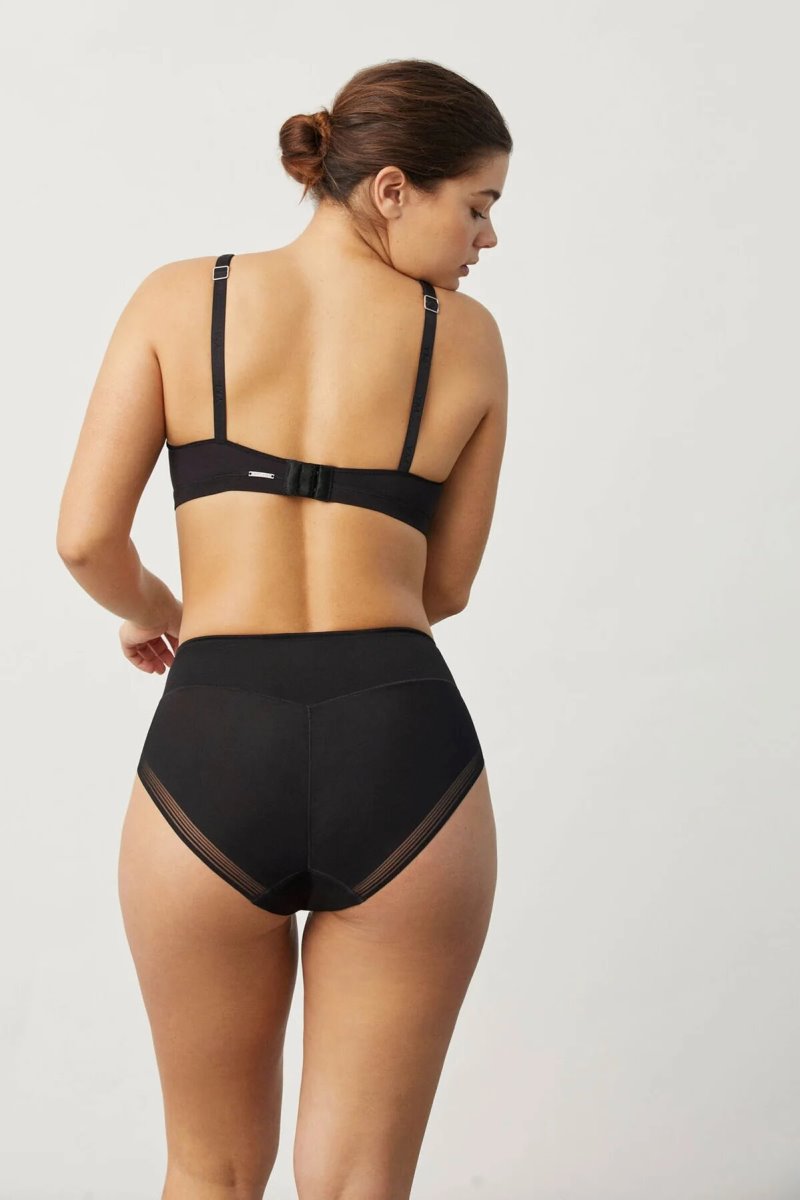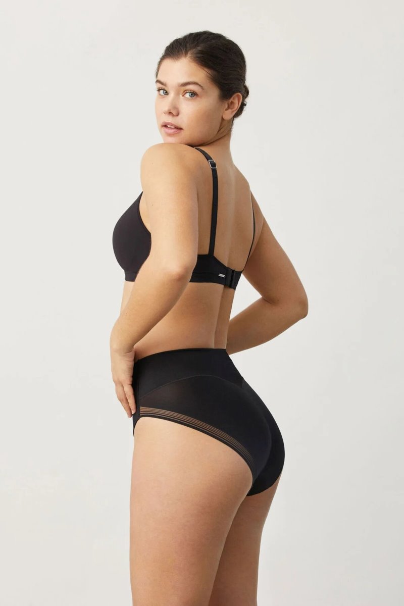 Трусики с завышенной линией талии. Усиленная коррекция в области живота и бедер. Выполнены из упругого эластичного полотна спереди и тонкой сетки сзади. Ластовица хлопковая. Состав: 70% полиамид, 30% эластан.