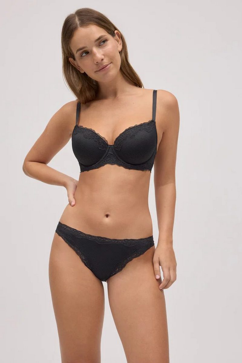 Белье из фешн коллекции от европейского производителя Ysabel Mora. Трусики бразильяно выполнены из тисненой ткани и элементов кружева. Бразильяно не только визуально привлекательны, но и мягкие на ощупь. Кружево добавляет нотку чувственности и изысканности, идеально подходит для того, чтобы чувствовать себя уверенно в любом случае. Ластовица хлопковая.