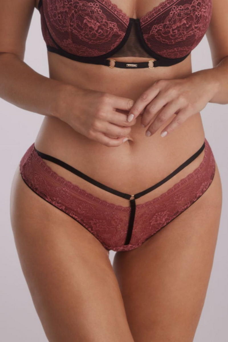 Трусы бразильяно Eva - это сочетание тонкости и чувственности. Выполнены из кружева в сочетании с эластичными черными полосками и золотым аксессуаром. Трусики подчеркивают округлость ягодиц и красоту женского тела. Ластовица хлопковая.