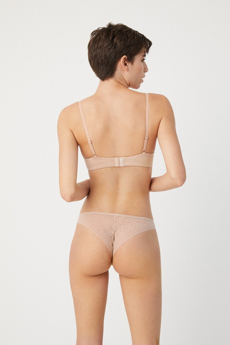 Трусики 19672 бразилиано. Задняя часть из кружева, передняя - гладкая эластичная ткань.