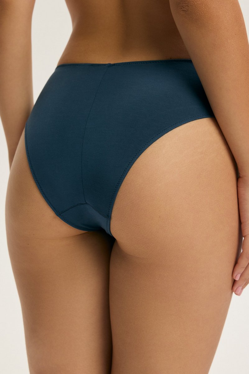Бразильяно Comfie с завышенной линией талии в темно-синем цвете - это сочетание минималистской формы и инновационного материала TENCEL™, созданного из натуральных целлюлозных волокон. Они мягко обвивают тело, подчеркивая изгибы и создавая гладкую линию бедер. Их сверхлегкая структура обеспечивает мягкость на ощупь и воздухопроницаемость, благодаря чему модель отлично подходит для повседневной носки и в комплекте с бюстгальтером Comfie. Это выбор для женщин, которые ценят экологически чистые решения и в то же время хотят чувствовать себя особенно женственно. Хлопковая ластовица.