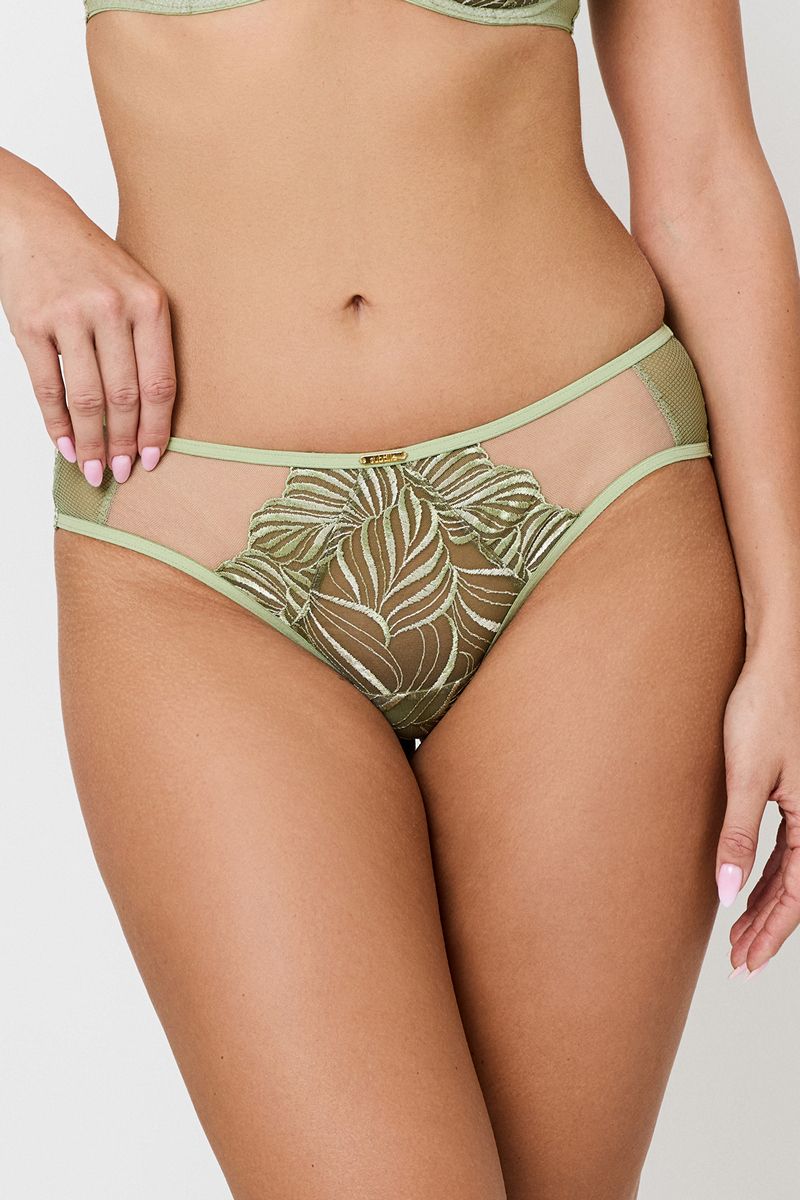 Трусы бразильяно FLORANCE от европейского производителя Subtille. Модель выполнена из кружева и микросетки. Золотые детали. Фирменный логотип Subtille. Ластовица хлопковая.