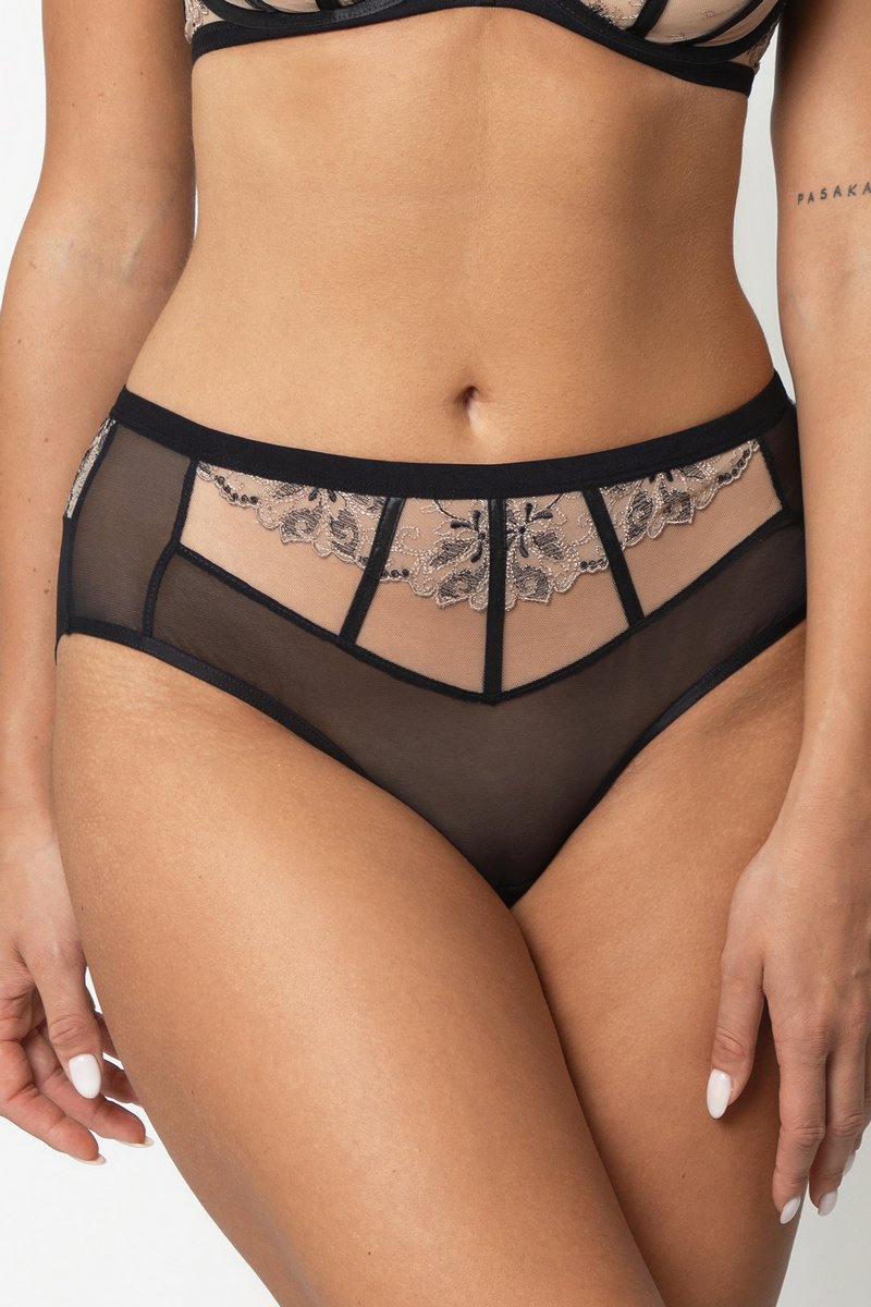 Трусы бразильяно OLIVIA от европейского производителя Subtille. Модель выполнена из эластичного микротюля с кружевной вышивкой, задняя часть - из двойного микротюля. Хлопковая ластовица.