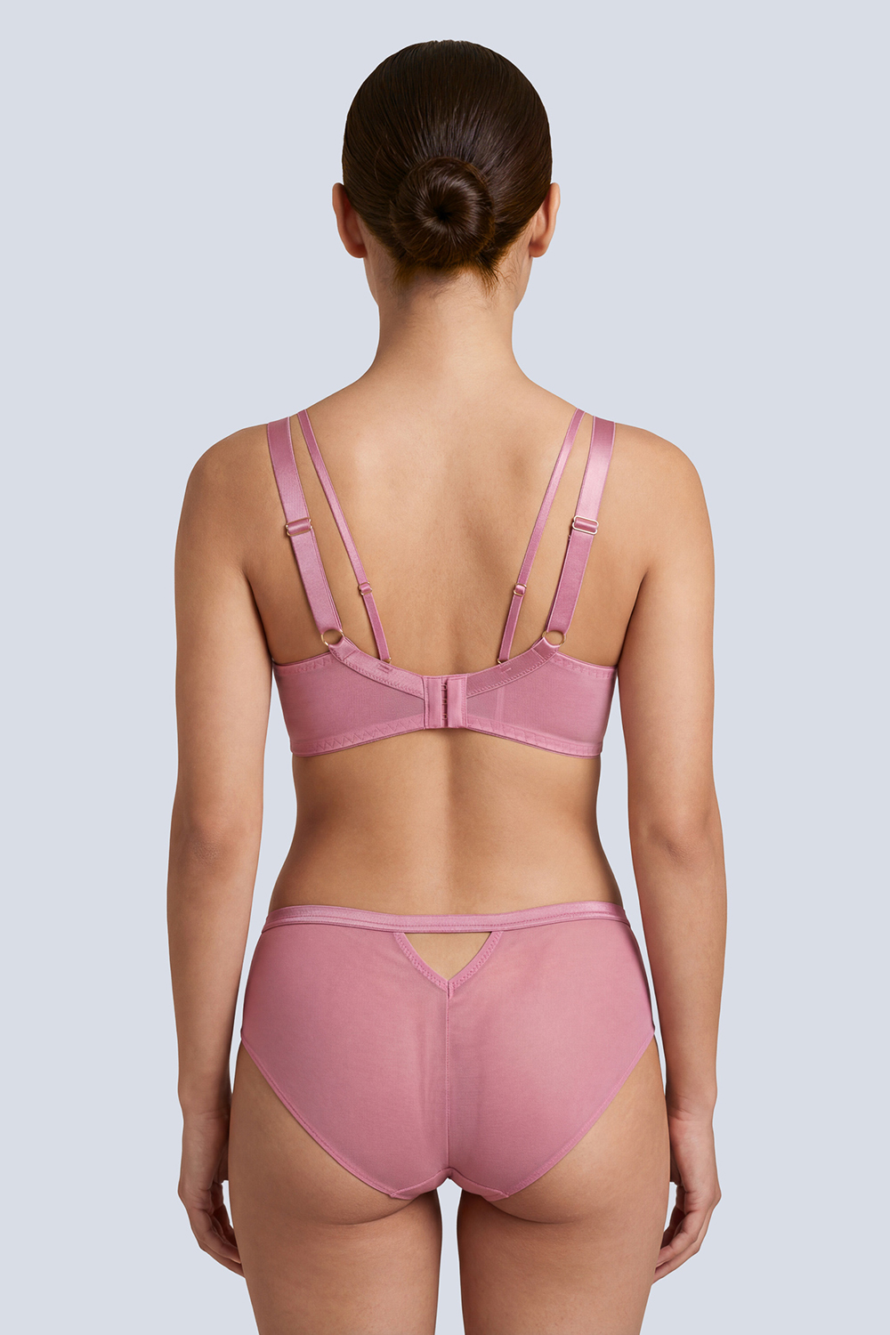 Романтичные розовые трусики-бразилиана Chiara выполнены из эластичной сеточки с красивого кружева. Ластовица хлопковая.