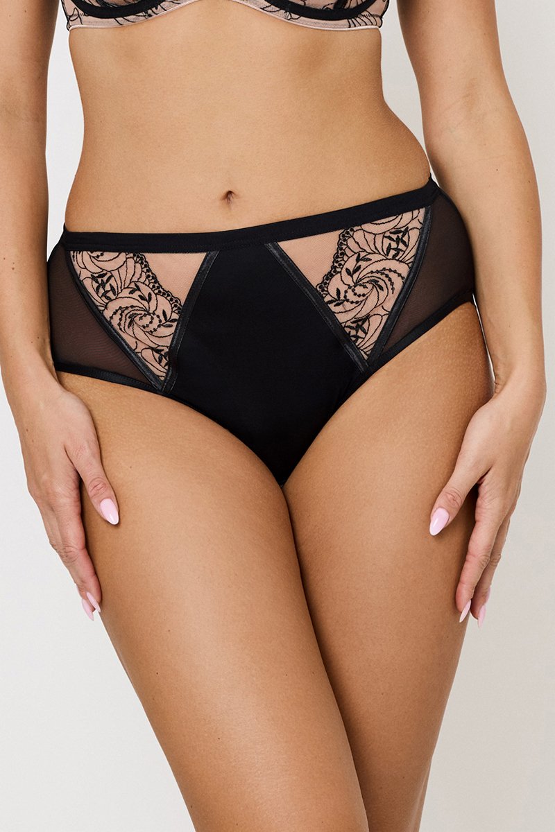 Трусы высокие FREYA от европейского производителя Subtille. Модель выполнена из гладкой микрофибры, микросетки и тюля с вышивкой. Сзади из двойной микросетки. Ластовица хлопковая.