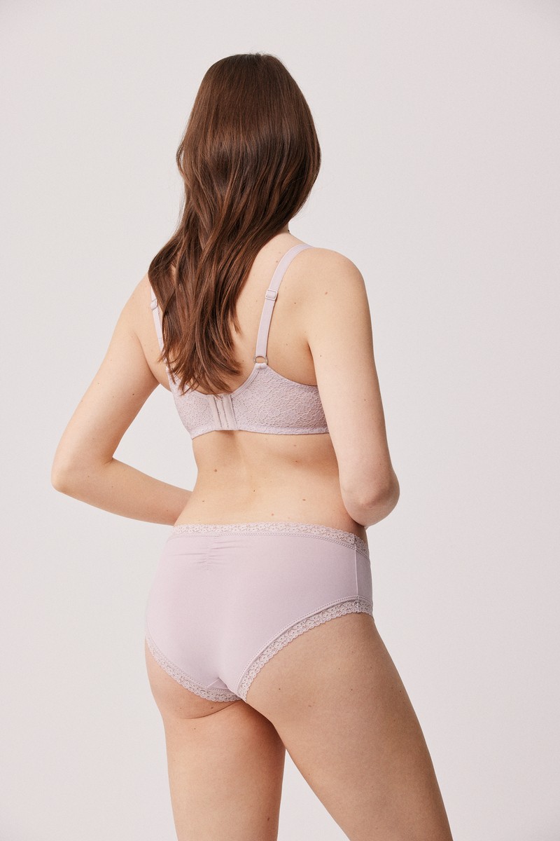 Трусы слипы средней посадки с широким боком. Трусики гладкие, декорированы узкой кружевной каймой.