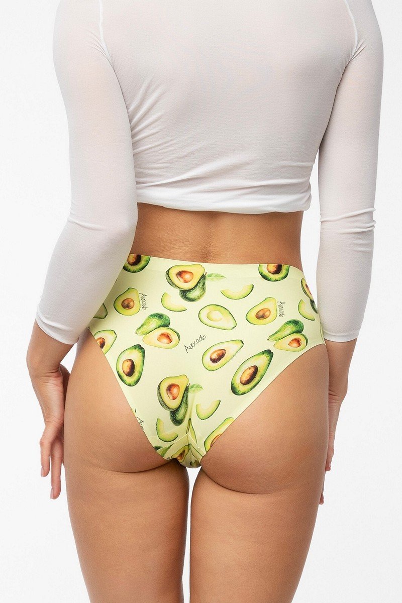 Женские трусы слипы средней посадки. Красочный рисунок с темой авокадо. Лазерная резка, бесшовная отделка, невидимы под облегающей одеждой. Упаковано в декоративную коробку. Идеально подходит для подарка.