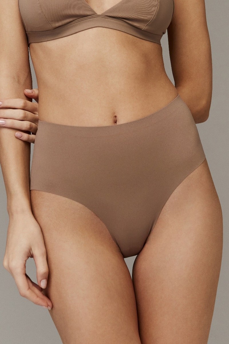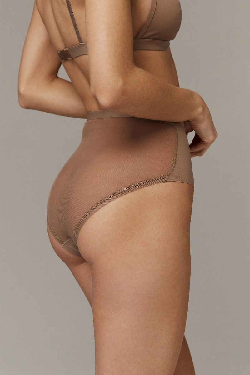 Трусы бразильяно с высокой посадкой. Имеют проклеенный пояс и лазерную обработку по ножкам. Выполнены из нежной, эластичной сетки сзади и бархатистого материала спереди. Комфортная конструкция трусиков способствует созданию элегантной, утонченной эстетики, которая органично впишется в ваш повседневный гардероб. Перед изделия: 62% полиамид, 38% эластан Сетка: 90% полиамид, 10% эластан Ластовица: 100% хлопок