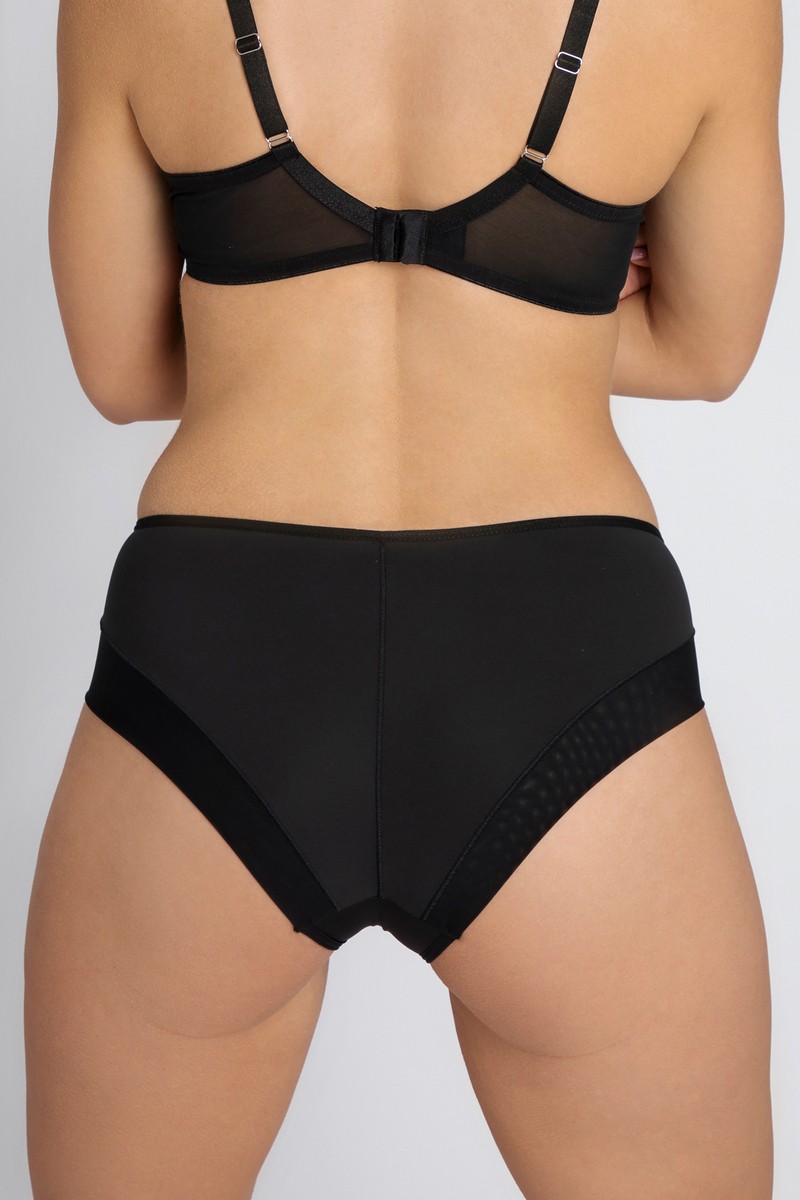 Трусы TERESA со средней линией талии от европейского производителя Subtille. Модель выполнена из микрофибры с добавлением кружевной вышивки и вставок двойного микротюля. Хлопковая ластовица.