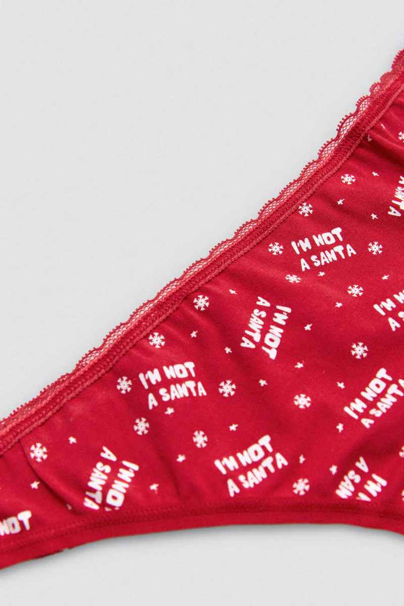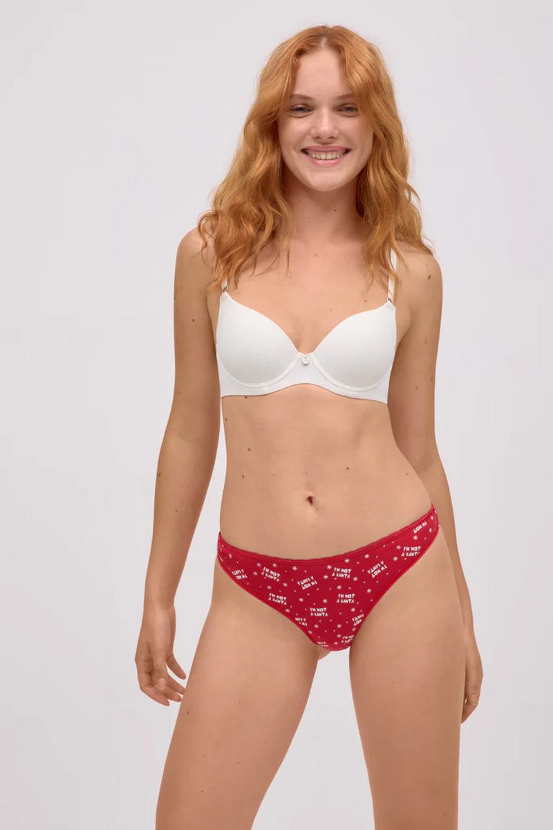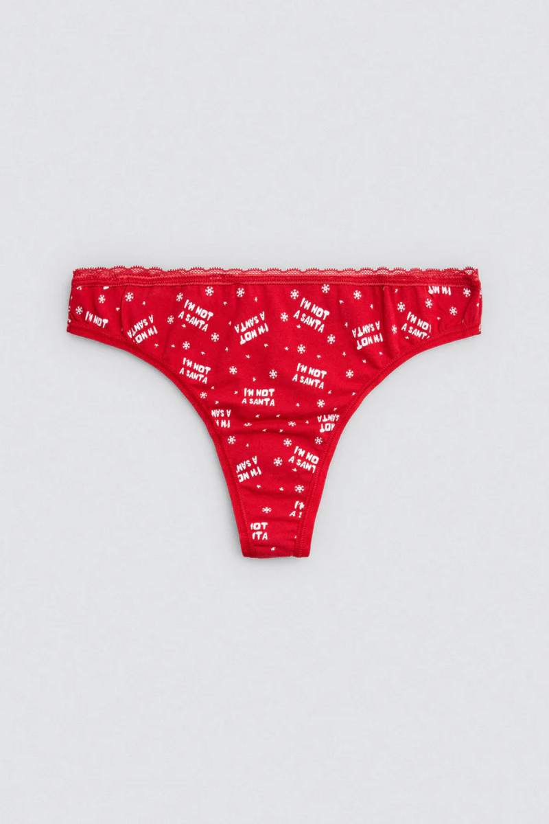 Рождественская коллекция хлопкового белья от Ysabel Mora. Почувствуйте себя нежно и сохраните дух Рождества и Нового года! Трусики стринги выполнены из приятного хлопкового материала с принтом. Стринги не только визуально привлекательны, но и мягкие на ощупь. Идеально подходят для того, чтобы чувствовать себя уверенно в любом случае. Ластовица хлопковая. В это Рождество Ваш подарок будет волшебным! Изделие упаковано в очаровательную коробочку.