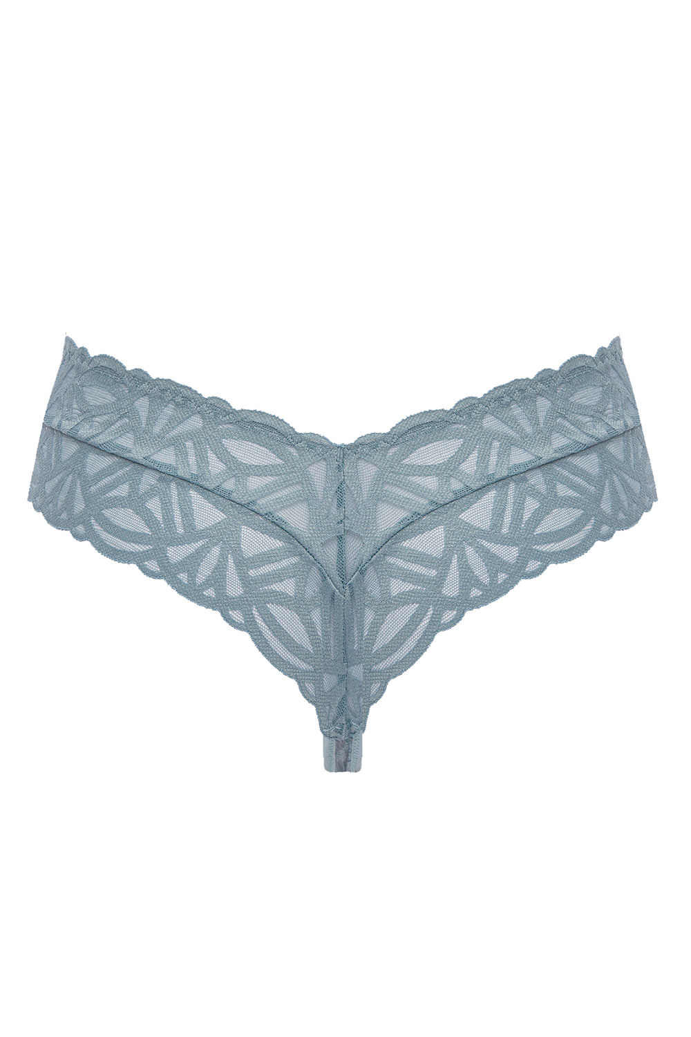 Тонкие кружевные трусики-стринги Salt&Sea в форме галочки, голубого цвета. Ластовица хлопковая.