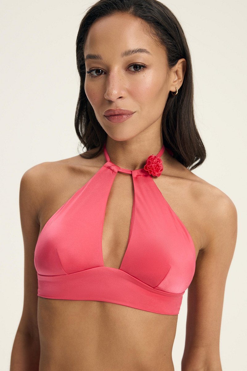 Бюст купальный от европейского производителя Esotiq. Чашка тонкий съемный поролон без кости. Завязывается через шею. Застежка на спине с регулировкой объема. Украшение - съемный цветок. Состав: подклад 100% полиэстер, подклад чашки 100% полиэстер.