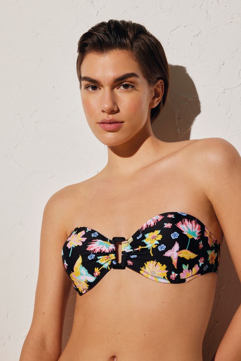 Купальный бюст бандо от Ysabel Mora. Чашка на кости с эффектом push up. Завязки на шее, застежка сзади. Смешивайте и сочетайте! Европейский размер соответствует российскому размеру!