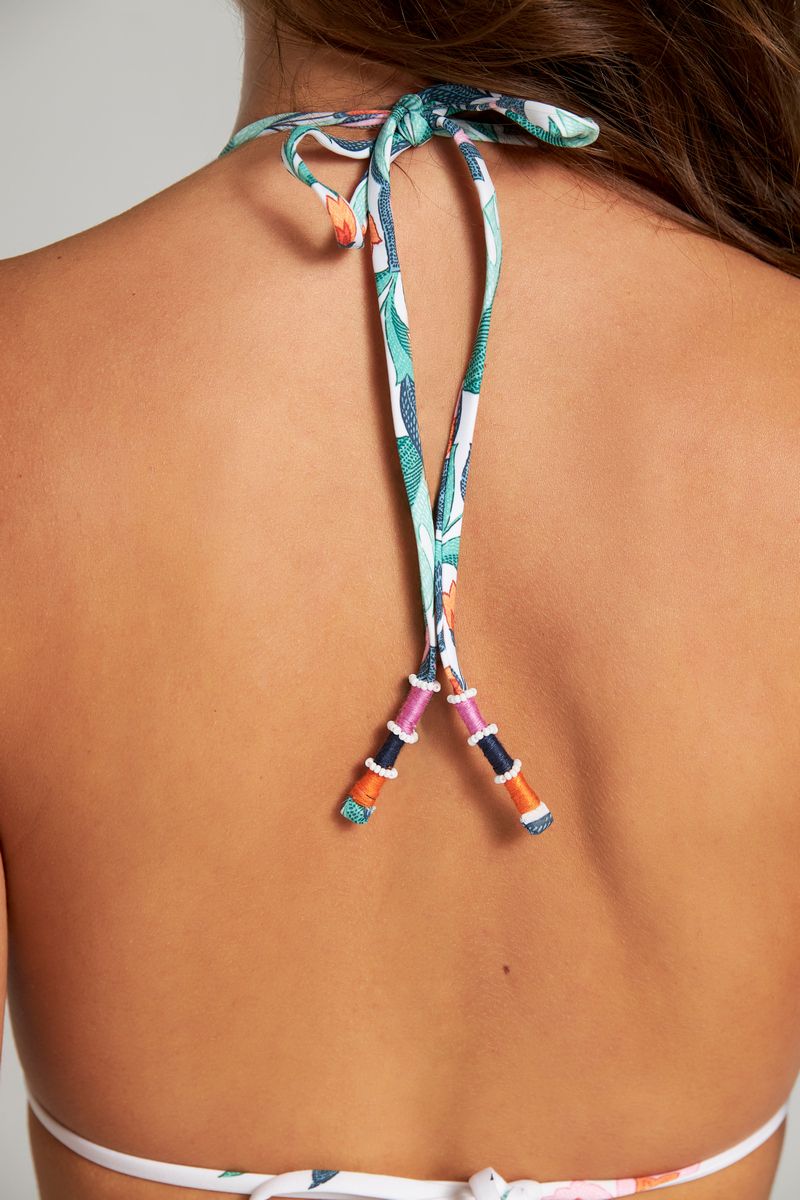Бюст купальный от колумбийского бренда Cosita Linda. Модель выполнена из высококачественной ткани с эксклюзивными дизайнерскими аксессуарами ручной работы, на подкладе. Специальная вышивка на изделии из биссера, чашка на тонком съемном поролоне. Бренд уделяет большое внимание защите природы, поэтому все свои изделия производит из современной переработанной эко ткани по технологии Less Water.