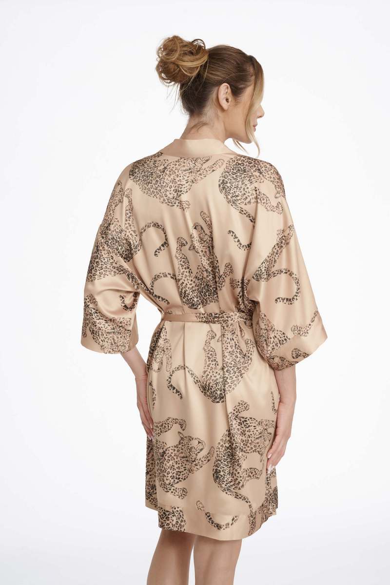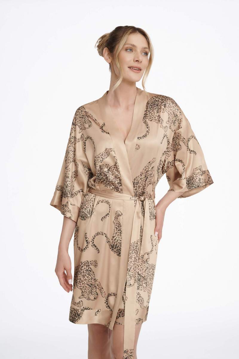 Нежный атласный халат LOVABLE. Отлично подходит для отдыха. Изделие выполнено с принтом в леопардовом стиле.