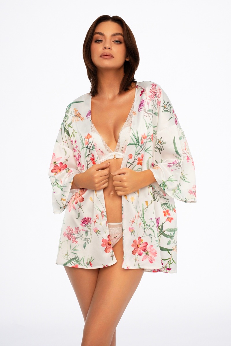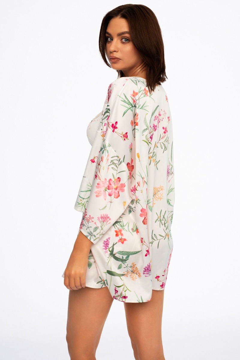 Накидка-халат 41233 DARE выполнена из эластичного сатина с цветочным принтом. Халат без пояса.