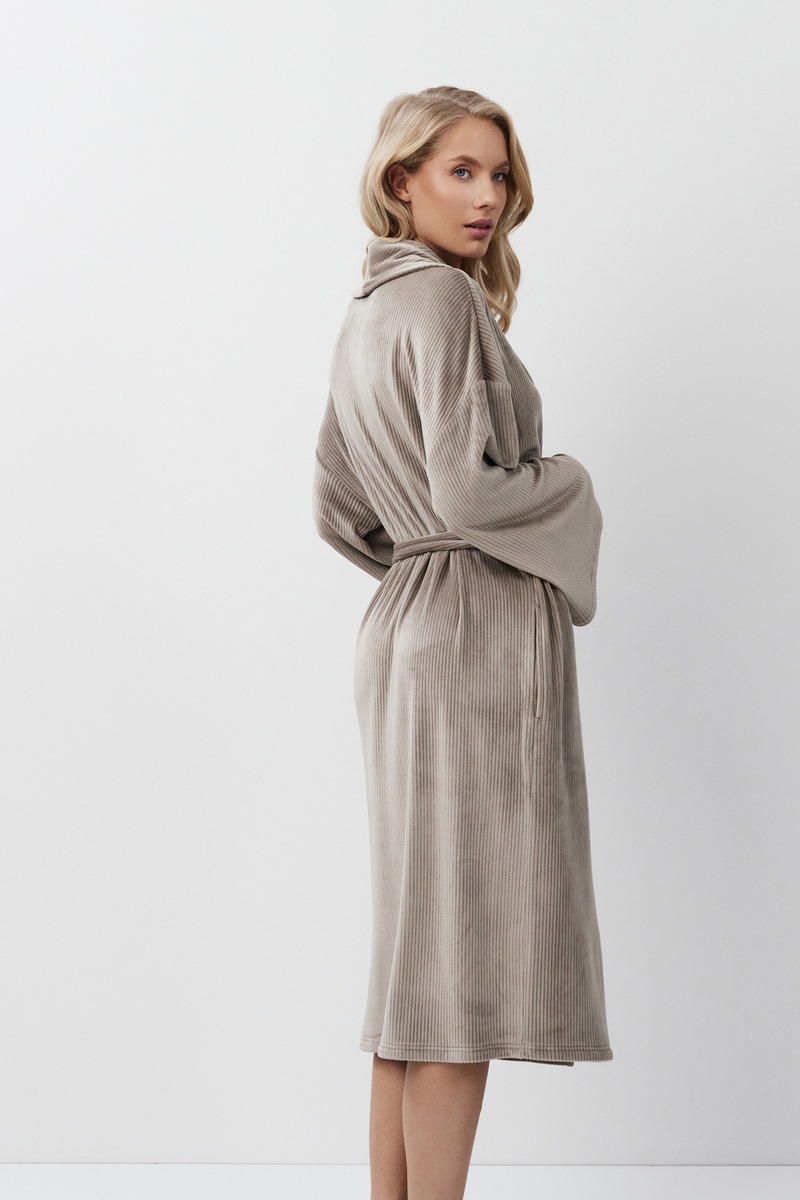 Халат CAPUCINE для максимального комфорта и расслабления, окутывает вас и подарит уют. Халат длиной ниже колена. Изготовлен из мягкой ткани в рубчик, приятной для тела и напоминающей велюр. Имеется пояс на талии. Длинные широкие рукава. Халат станет вашим идеальным спутником в моменты расслабления.