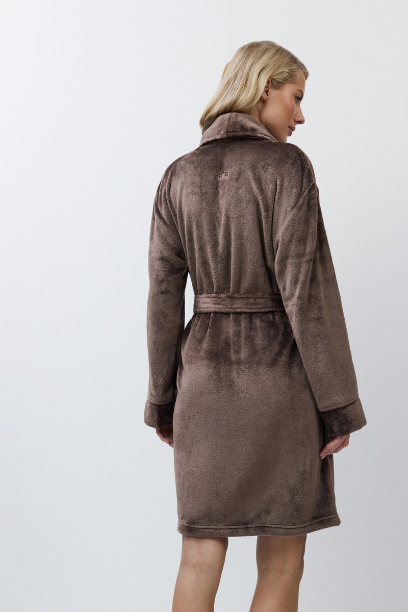 Расслабьтесь с комфортом в этом мягком и деликатном халате Eva. Халат изготовлен из чрезвычайно мягкой и деликатной флисовой ткани. Нижние края халата и карманы закруглены. Воротник, манжеты и карманы украшены изящной атласной окантовкой. И в довершение всего на манжете рукава вышита маленькая блестящая корона, потому что кому не нужна нотка королевского шика в одежде для отдыха?