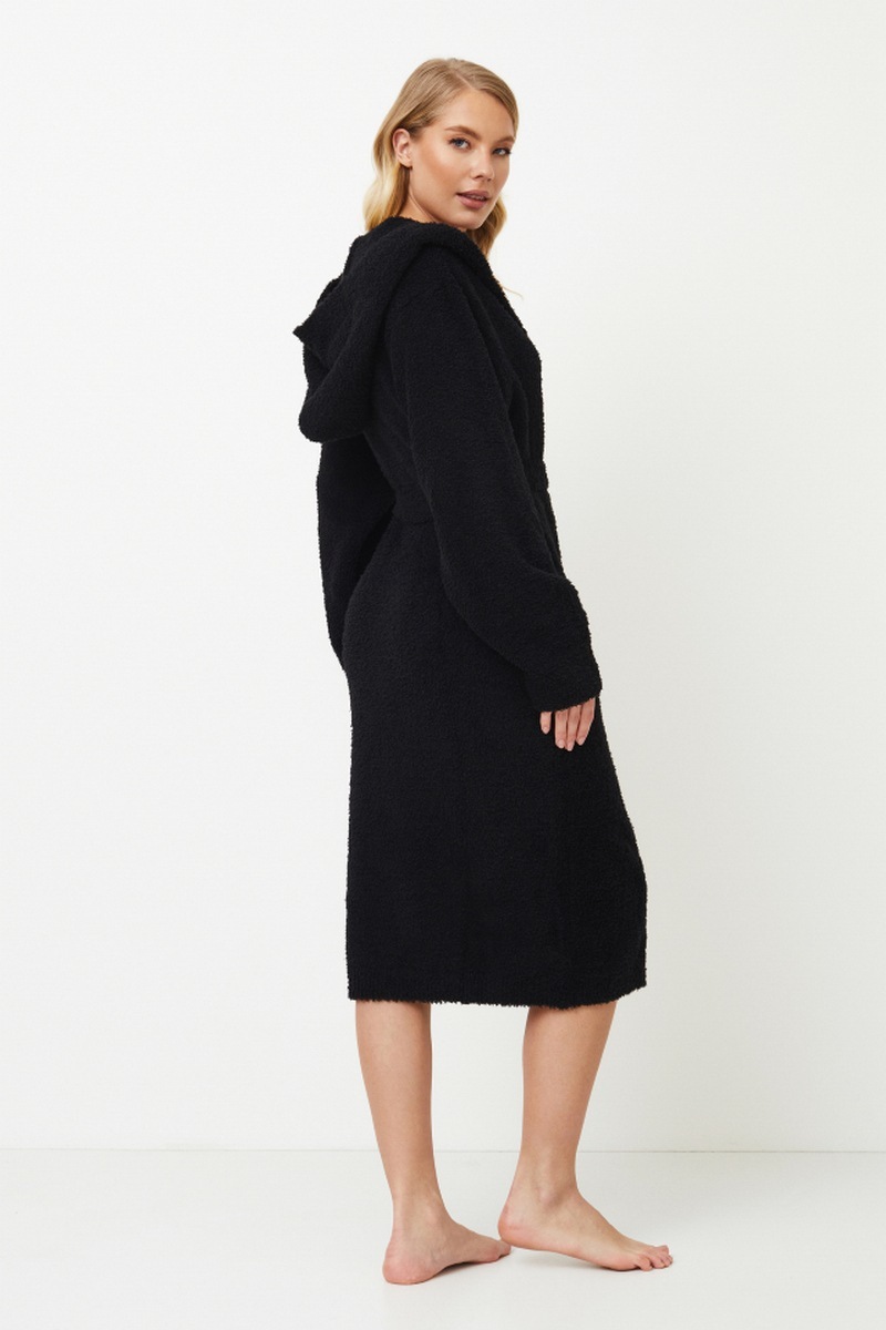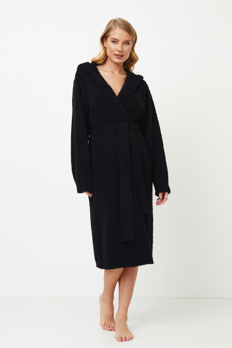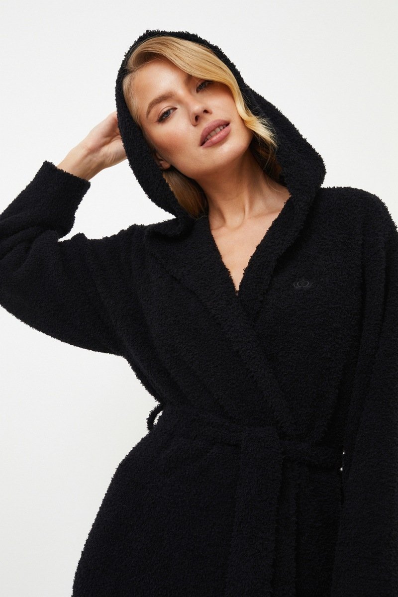 Представляем вашему вниманию халат Rory, который станет вашим идеальным спутником в холодные ночи. Благодаря длинным рукавам, дизайну длиной до икр, вышивке в виде короны и обволакивающему капюшону, этот черный халат окутает вас теплом и комфортом. Кроме того, его сверхмягкая ворсистая трикотажная ткань создает ощущение уюта на вашей коже. Насладитесь стильным отдыхом в купальном халате Rory.