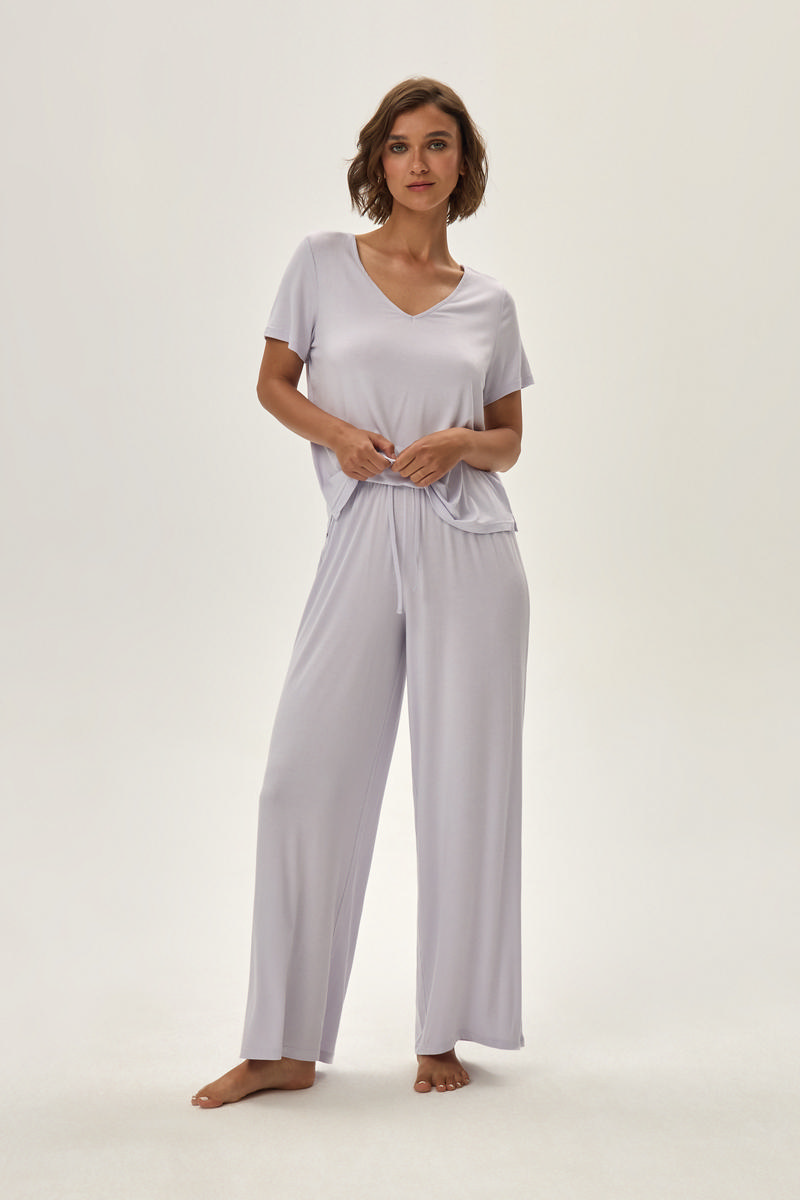 Комплект женский 42062 JULIETTE с длинными штанами от европейского производителя Esotiq. Свободная футболка с V-образным вызером. Штаны комфортной посадки с эластичным поясом с кулиской. Выполнен из вискозы.