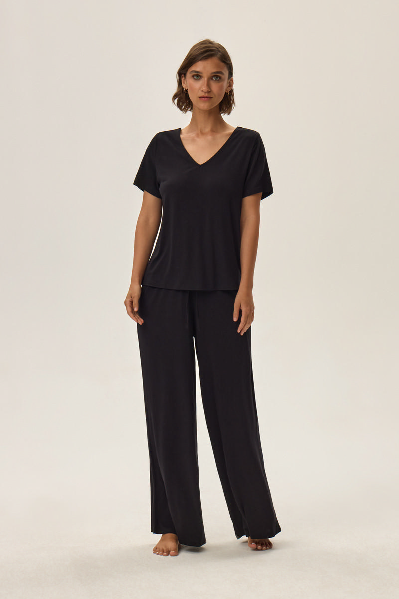 Комплект женский 42062 JULIETTE с длинными штанами от европейского производителя Esotiq. Свободная футболка с V-образным вызером. Штаны комфортной посадки с эластичным поясом с кулиской. Выполнен из вискозы.