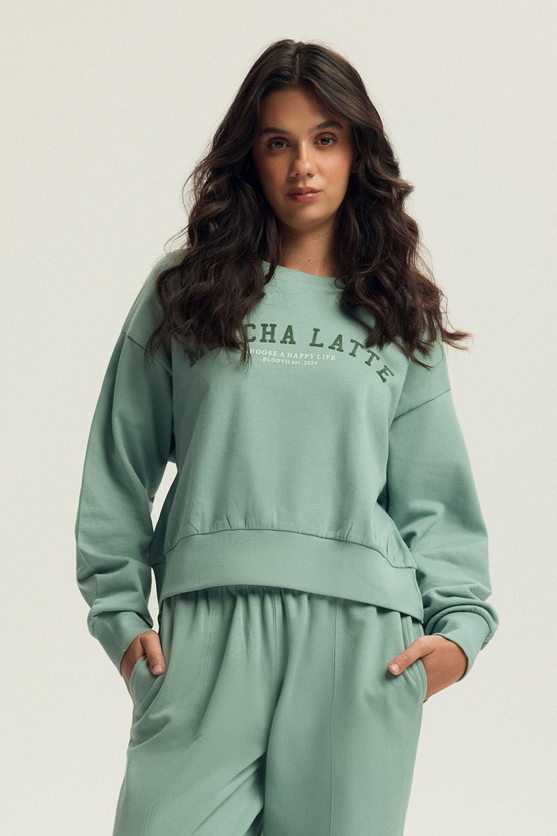Толстовка женская от европейского производителя Bloovii by Esotiq. Толстовка с длинными рукавами на манжетах, спереди надпись. Очень комфортная и приятная к телу.