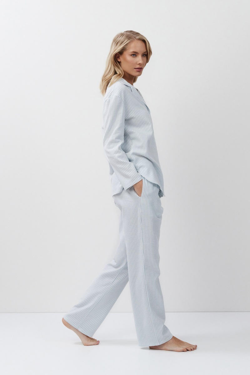 Пижама женская со штанами BROOKE для вашего ночного комфорта. Пижама выполнена из мягкого фланелевого хлопка. Рубашка на пуговицах, с длинными рукавами, отложным воротником и нагрудным карманом. Штаны свободные, с эластичным поясом с завязкой и двумя боковыми карманами. Расслабьтесь с максимальным комфортом и стилем в пижаме BROOKE.