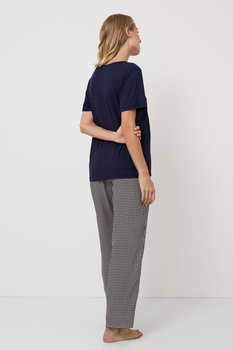Представляем вашему вниманию потрясающую пижаму Isolda, в которой каждая деталь продумана до мелочей. Этот комплект, изготовленный из лёгкой вискозы с очаровательным геометрическим узором, обеспечивает непревзойденный комфорт и воздухопроницаемость. Рубашка на пуговицах, с короткими рукавами, может похвастаться шикарным V-образным округлым воротником и нагрудным карманом для дополнительного стиля. Рубашка дополнена карамельными вставками на воротнике спереди, нагрудном кармане и манжетах рукавов, излучая элегантность с каждой строчкой. Брюки с матовой атласной отделкой карамельного цвета, регулируемым поясом-бантом и шикарной окантовкой по бокам и нижнему краю. Благодаря удобным карманам для хранения необходимых вещей, этот комплект сочетает в себе практичность и элегантность. Преобразите свой домашний образ с помощью пижам Isolda и наслаждайтесь вечерами в расслабленной и неподвластной времени элегантности.