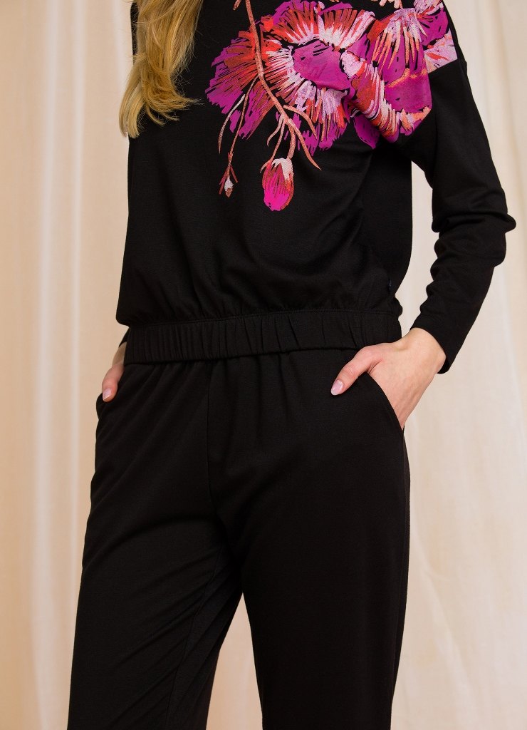 Костюм женский для дома и отдыха LHS 902 от европейского производителя KEY. Кофта на резинке по нижней кромке. Брюки приталенного кроя, с карманами. Материал футер без начеса.