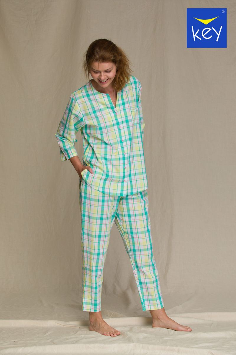 Уютная домашняя пижама LNS 452 от европейского производителя KEY. Мягкий нежный материал из хлопка с вискозой окутает вас теплом и уютом! В комплект входят широкие брюки с карманами и рубашка на пуговицах в нагрудным карманом. Принт в крупную классическую клетку.