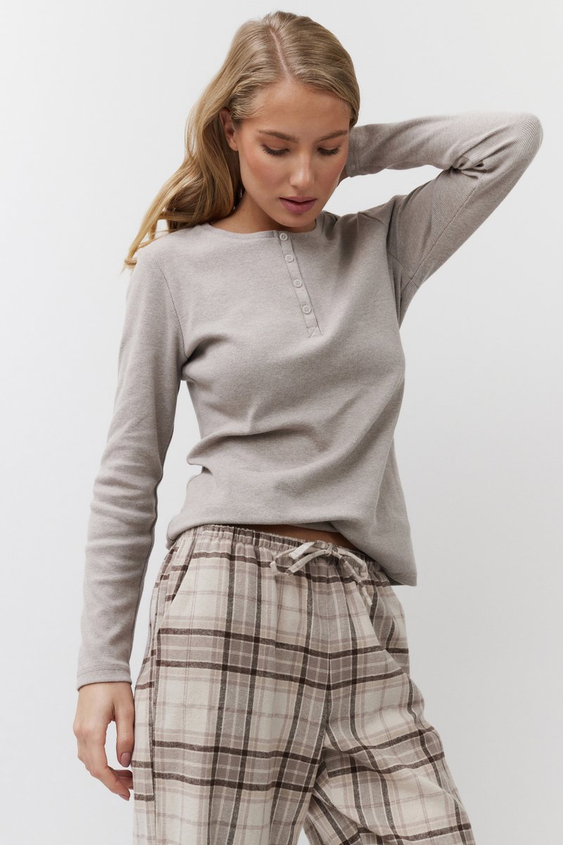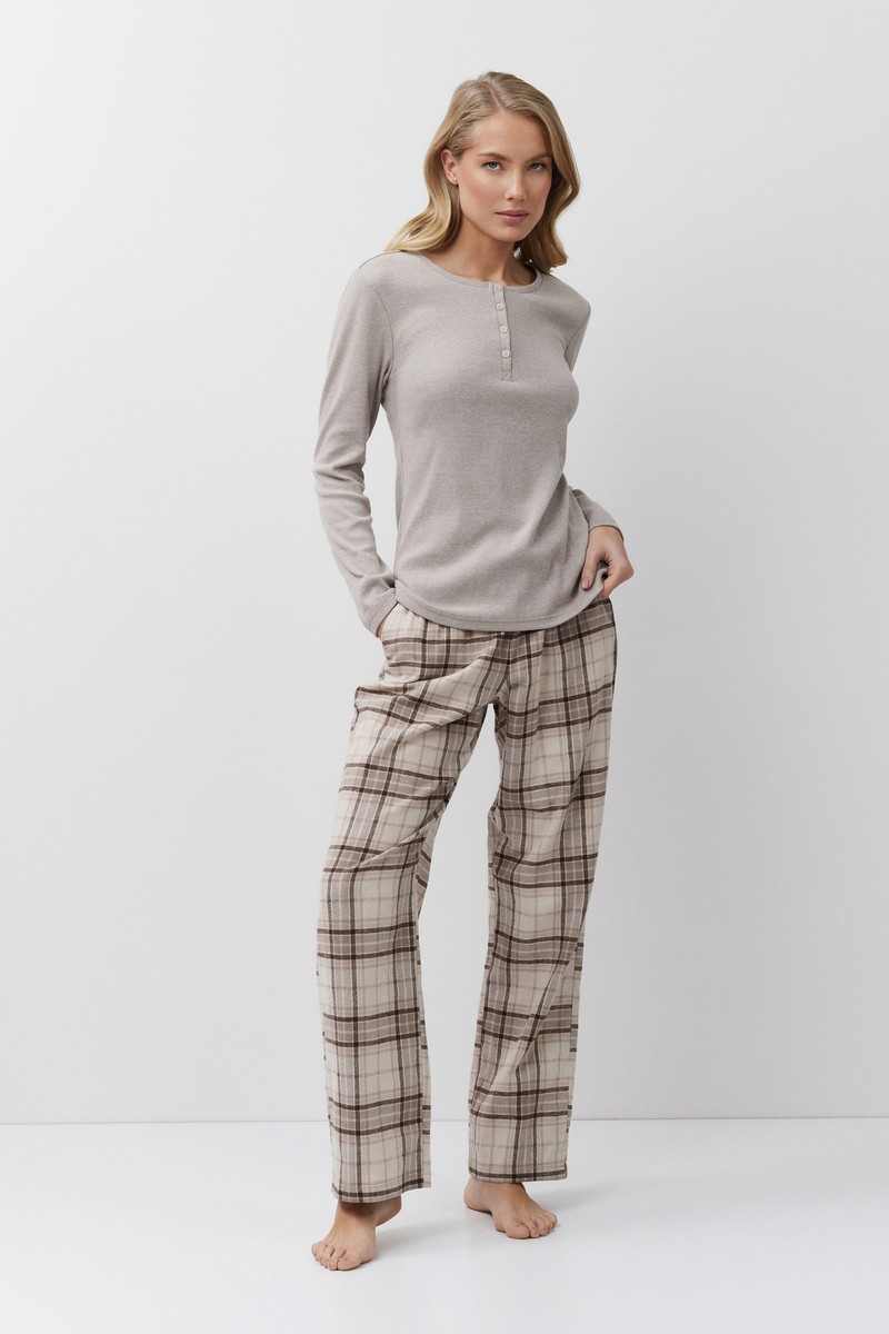 Пижама женская со штанами MARTINA для вашего ночного комфорта. Пижама выполнена из приятной к телу ткани. Лонгслив с длинными рукавами, вырез горловины с планкой на пуговицах. Штаны свободные, с эластичным поясом с завязкой и двумя боковыми карманами. Расслабьтесь с максимальным комфортом и стилем в пижаме MARTINA. Состав: верх 62% хлопок, 33% полиэстер, 5% эластан; низ 100% хлопок.