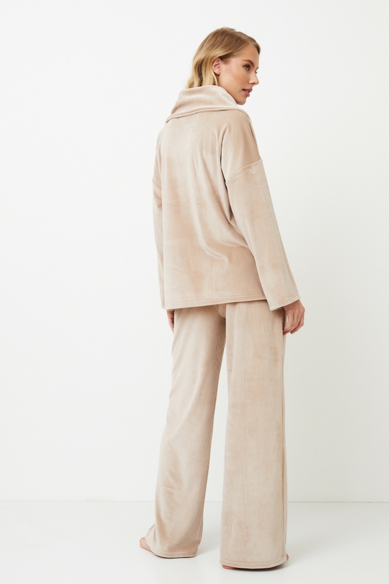 Представляем комплект Quinn, в котором комфорт сочетается с королевским стилем! В топе с длинными рукавами, уникальной застежкой-молнией в форме короны и уютным высоким воротником вы почувствуете себя королевой, отдыхающей дома. Широкие брюки обеспечивают свободу движений и удобство благодаря карманам для предметов первой необходимости. Выполненный в бежевом цвете, этот комплект излучает неподвластную времени элегантность. Побалуйте себя набором Quinn и насладитесь комфортом и стилем! Материал велсофт в рубчик.