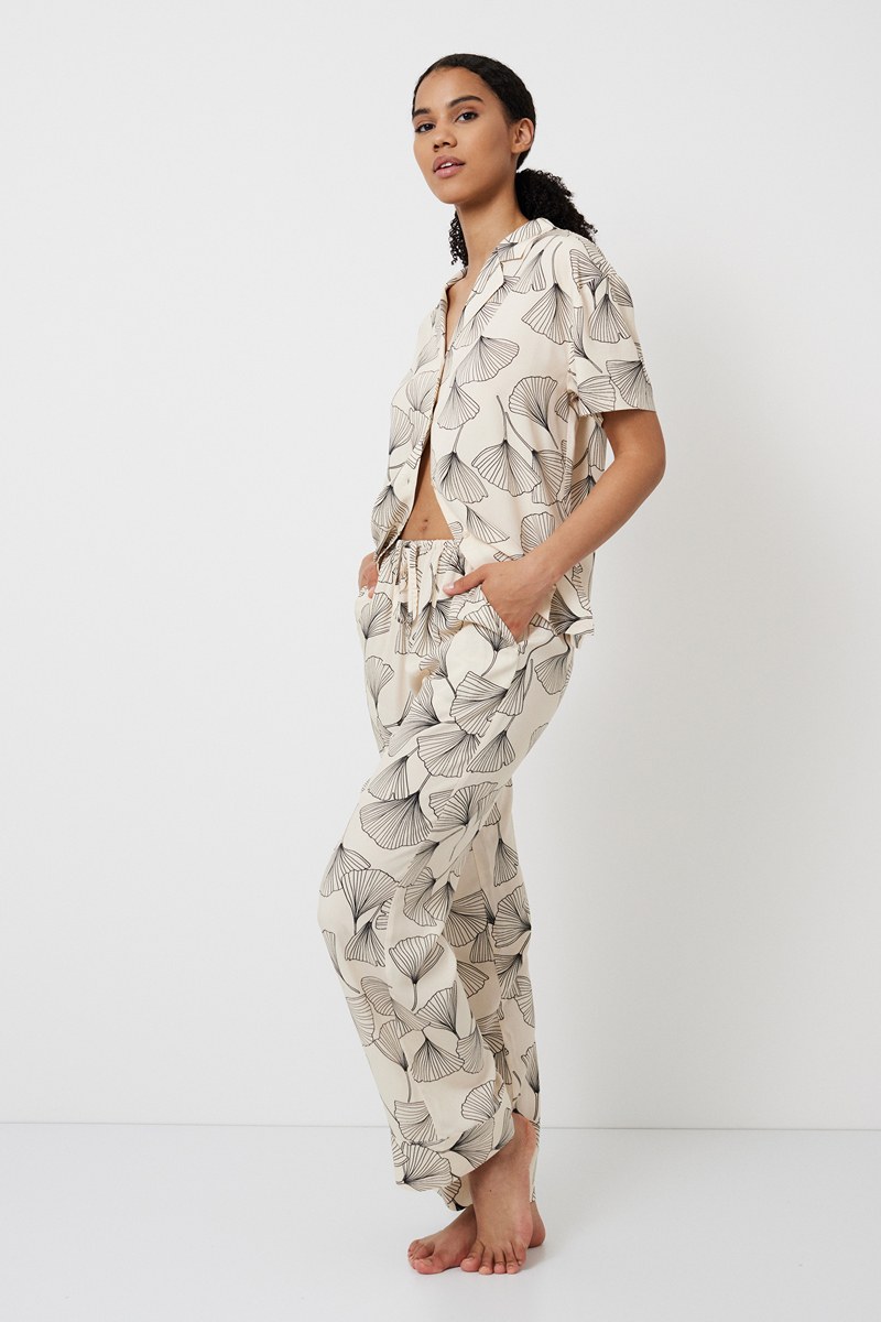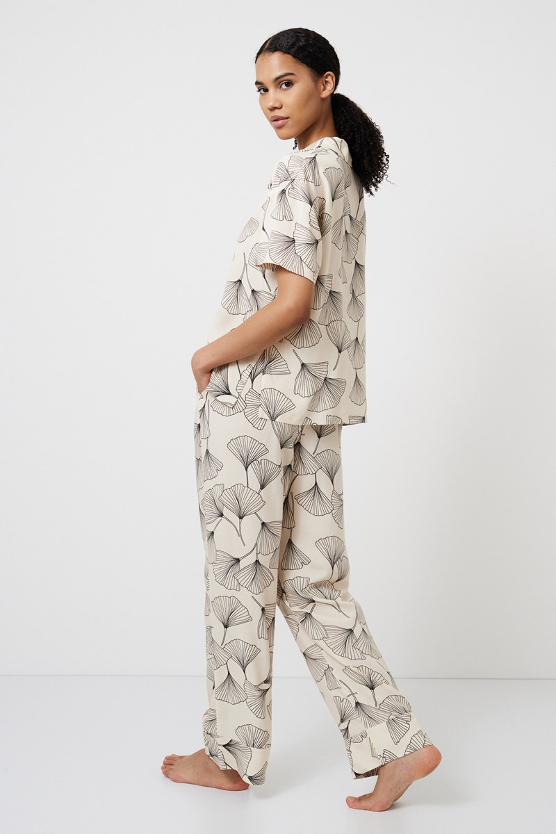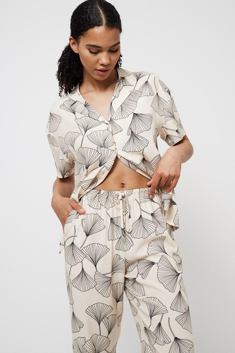 Представляем вашему вниманию длинную пижаму Seashell — идеальное сочетание элегантности и комфорта. Пижама изготовлена из лёгкой вискозы в цветочном принте, что придаёт ей великолепный и шикарный вид. Рубашка на пуговицах с короткими рукавами и острым V-образным вырезом. Боковые разрезы добавляют стильный штрих вашей домашней одежде. Широкие брюки с тонким эластичным поясом, регулируемой кулиской на талии и удобными карманами. Эти брюки обеспечивают комфорт и функциональность.