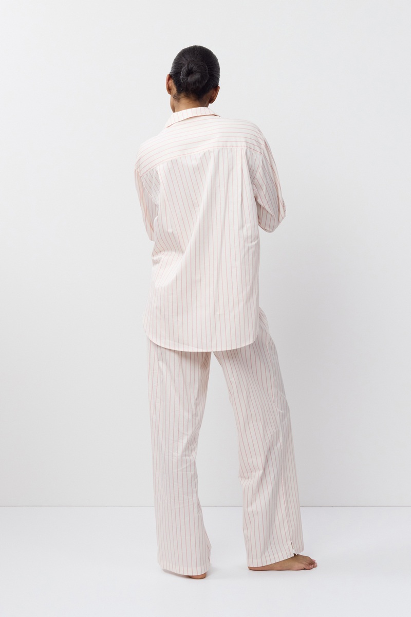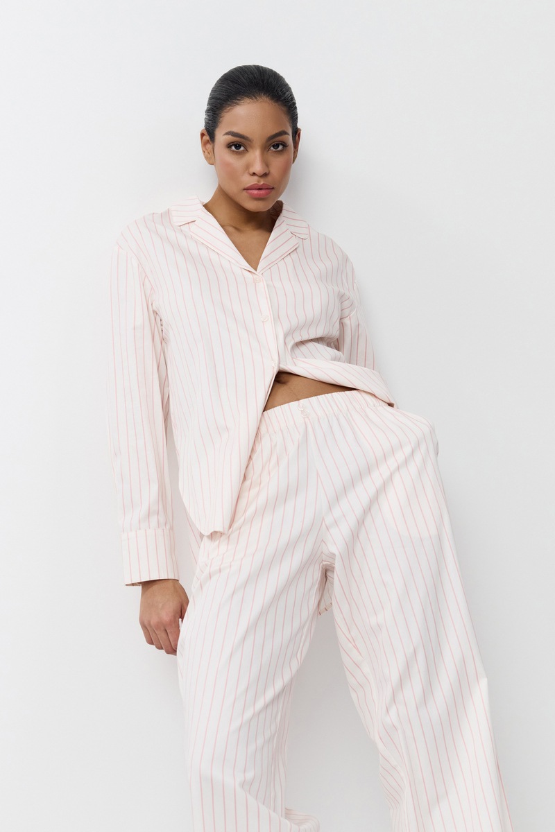 Пижама женская со штанами ZEPHYR для максимального комфорта и расслабления. Выполнена из хлопка. Рубашка на пуговицах, с отложным воротником и скругленными боками, рукава длинные. Штаны длинные, свободные, с комфортной посадкой, эластичный пояс с декоративными пуговицами. Пижама станет вашим идеальным спутником во время сна.