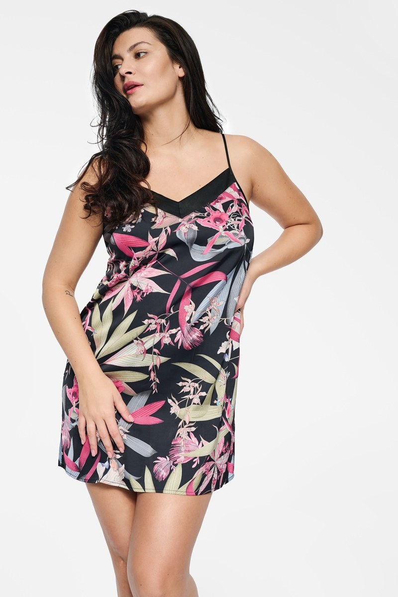 Нежная атластная сорочка с тонкими регулируемыми бретелями.