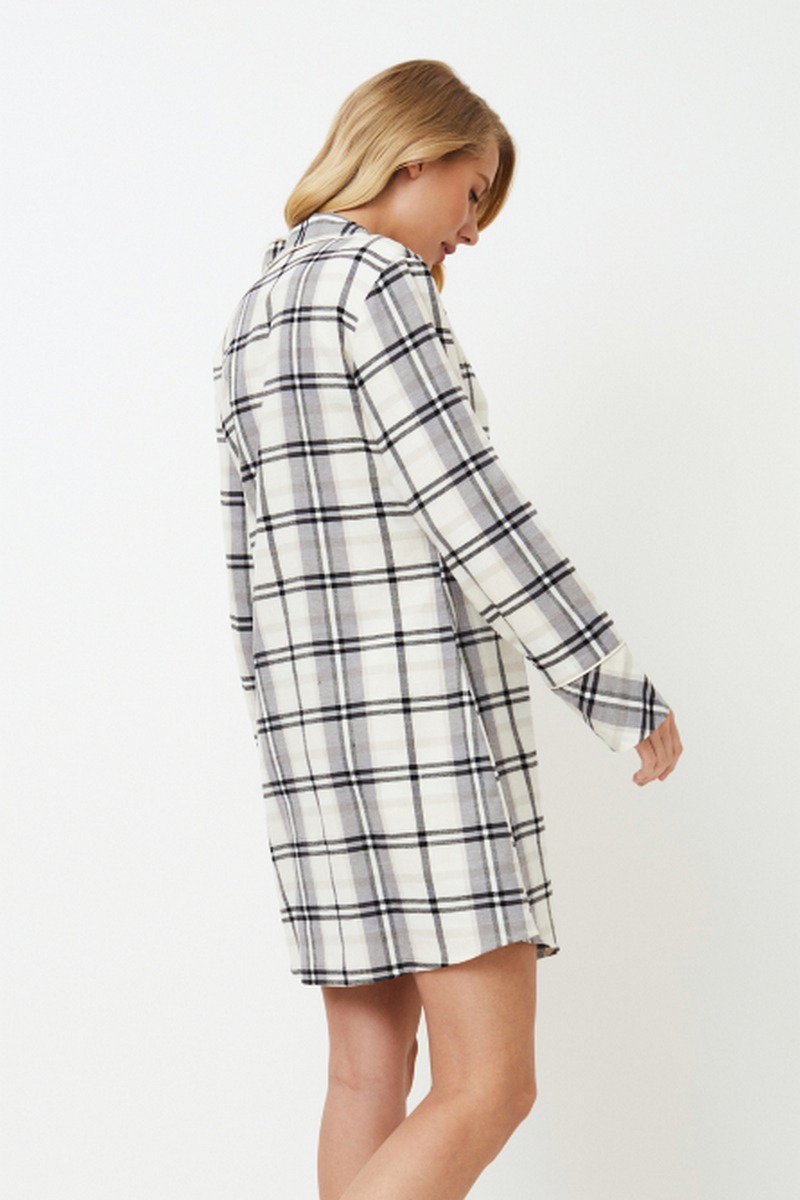 Представляем ночную рубашку Henrietta, в которой комфорт сочетается со стилем в каждой детали. Изготовлена из мягкого хлопка и украшена вечным рисунком в белую и серую клетку. Платье с длинными рукавами, V-образным вырезом горловины, застежкой спереди на пуговицы, манжетами на рукавах и нагрудным карманом дополнено окантовкой. Расслабьтесь с максимальным комфортом и стилем в ночной рубашке Henrietta, созданной для того, чтобы ваши вечера были наполнены непревзойденным уютом и изысканностью. Изделие выполнено из хлопкового фланеля.