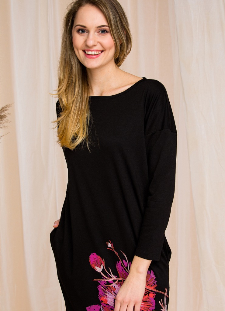 Сорочка женская для дома и отдыха LHD 902 от европейского производителя KEY. Модель с карманами и длинными рукавами. Материал французский футер без начеса.