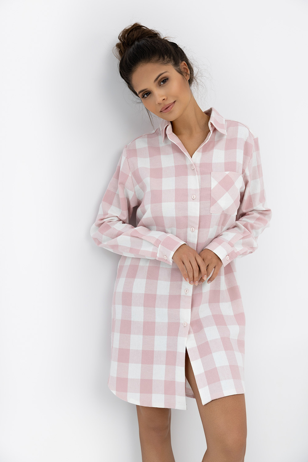 Повседневная сорочка рубашечного типа Marley в крупную клетку. Изделие на пуговицах, с фигурным воротником. Рукава оформлены манжетами. Идеально подойдет не только для сна, но и для отдыха в домашней обстановке.
