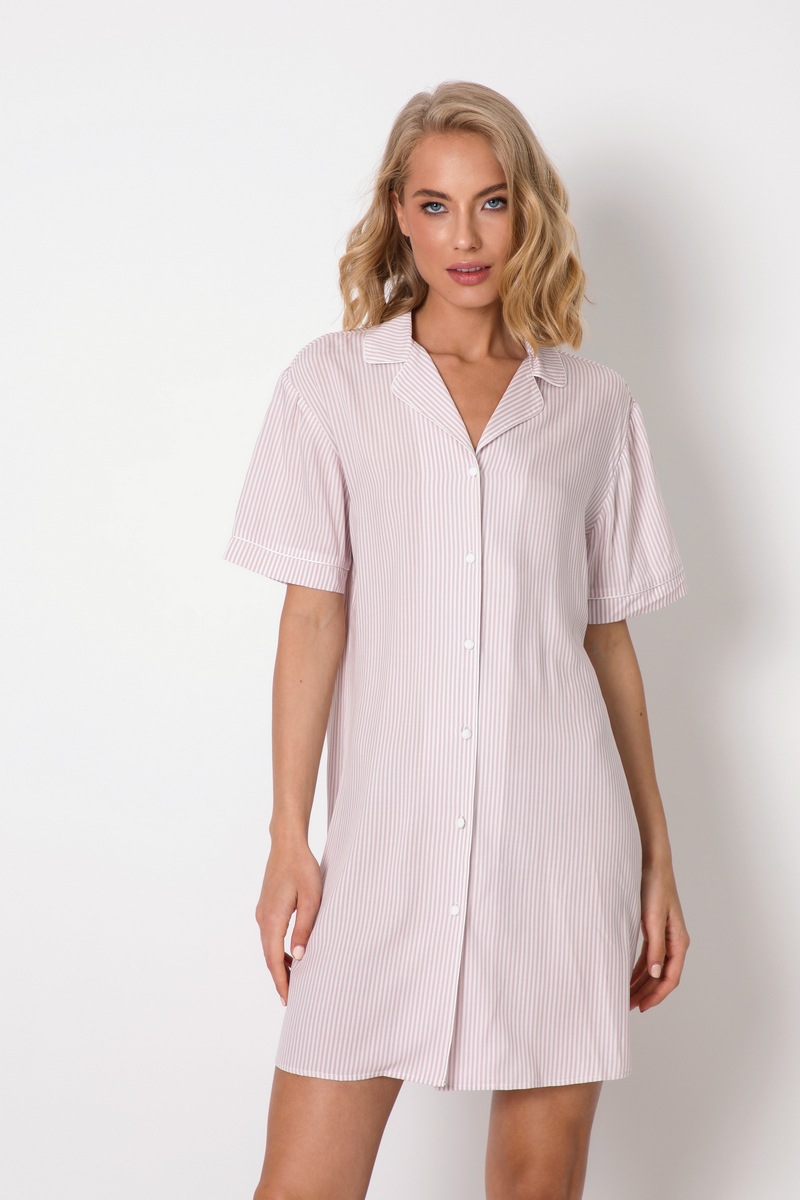 Красотка в розовом - если это то, что вы ищете, то коллекция Венди здесь для вас. Ночная рубашка классической формы изготовлена из мягкой вискозной ткани с принтом. Пуговицы обтянуты тканью, а короткие рукава и воротник отделаны кантом.
