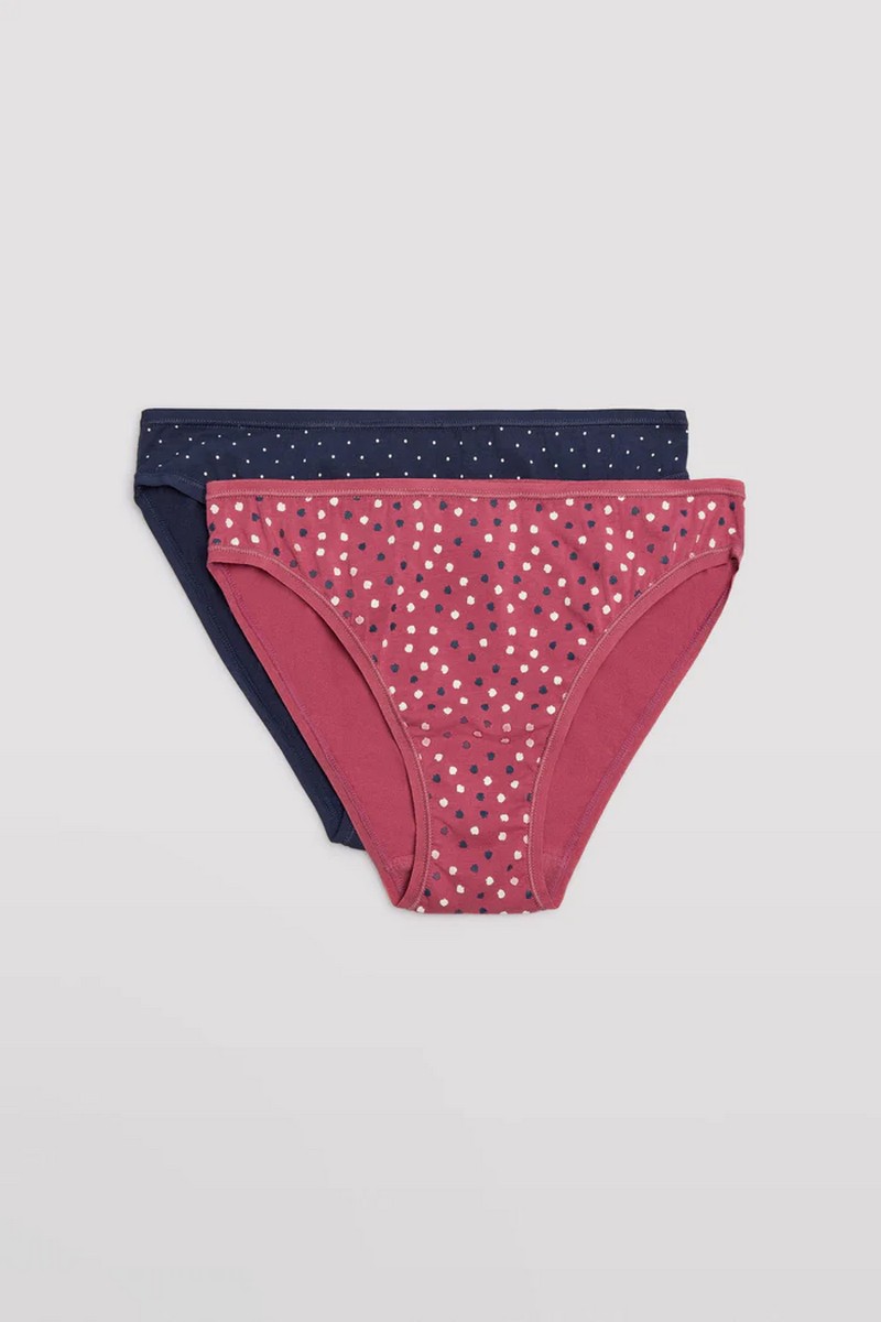 Обновите свою коллекцию нижнего белья с помощью наших хлопковых мини-трусиков в упаковке по 2 штуки. В этот комплект входят по одному трусику с каждым принтом, что предлагает вам разнообразие и стиль в повседневной жизни. На каждом трусике есть небольшой центральный бант, который добавляет нотку шарма. Эти трусики, изготовленные из мягкого и дышащего хлопка, дарят вам комфорт и прохладу в течение всего дня, сохраняя при этом комфорт и стиль.