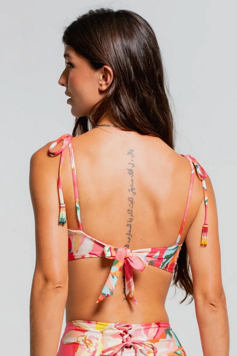 Бюст купальный от колумбийского бренда Cosita Linda. Изящный и женственный бюстгальтер на подкладе. Со съемной поролоновой чашкой, на завязках, которые декорированы на кончиках плетением из бисера. Этот стильный бюстгальтер красиво переливается на солнце и в лучах заката.