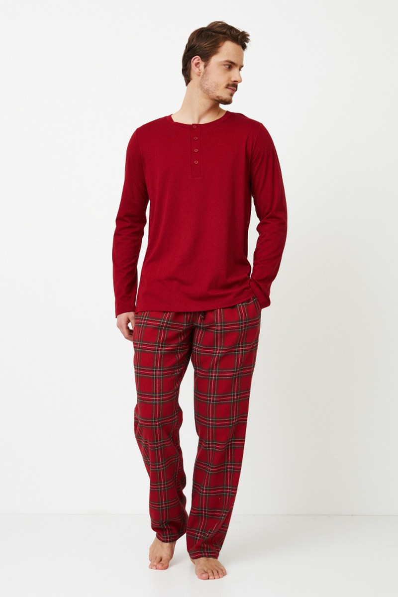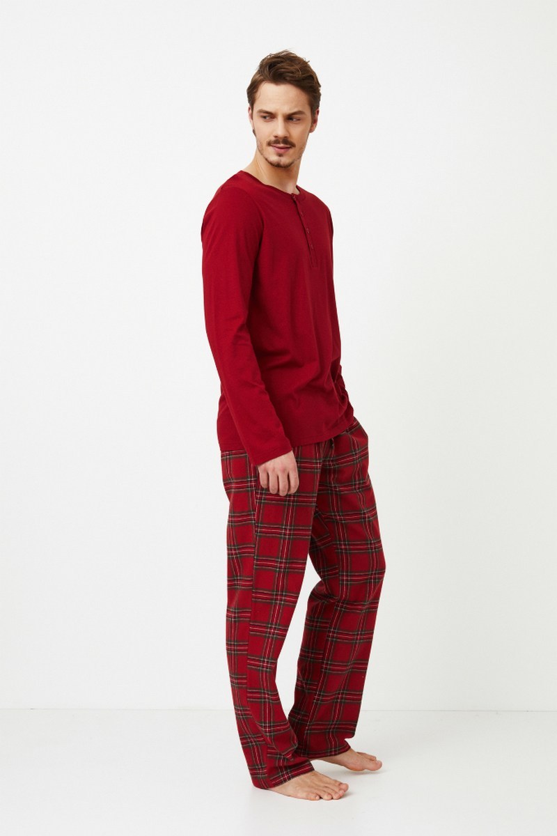 Длинная пижама Harry - незаменимая вещь для зимы, которая является не только классикой, но и праздничной традицией. Верх выполнен в красном цвете из хлопковой модальной ткани в рубчик. Круглый вырез украшен пуговицами для дополнительного комфорта. Брюки выполнены из мягкого матового хлопка в красную рождественскую клетку. У них есть карманы и регулируемая завязка на талии. Носить эту пижаму - все равно что укутаться в теплое и стильно отдохнуть холодными зимними вечерами. А когда вы уютно устроились в объятиях друг друга, почему бы не порадовать свою вторую половину пижамой с изображением Холли? Это идеальный способ разделить тепло и радость этого сезона вместе. Кофта: 50% текстильный хлопок, 50% модал Брюки: 100% хлопковый фланель