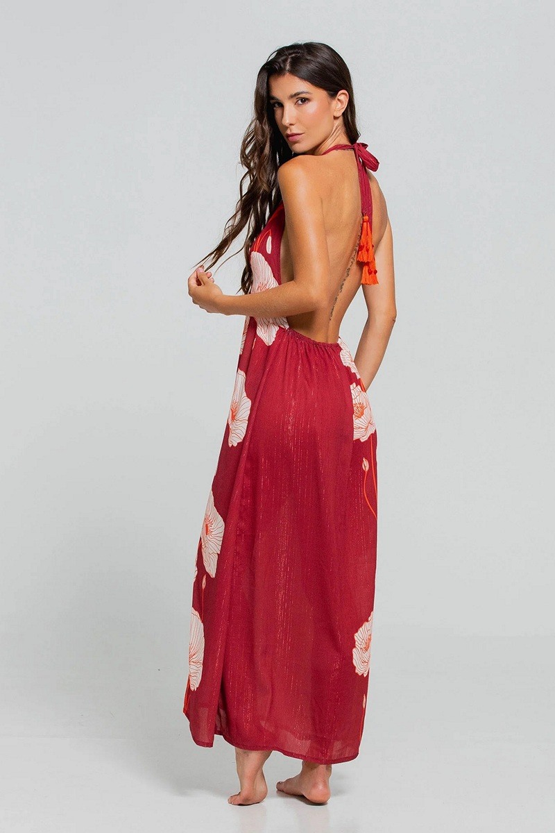 Пляжное платье от колумбийского бренда Cosita Linda. Длинное платье с вырезом-хомутом создано для того, чтобы в нем было удобно двигаться. Изящный вырез-хомут дополнен кистями ручной работы на завязках, придающих этому утонченному силуэту особую изюминку. Идеально подходит для моментов, когда хочется выглядеть элегантно, будь то на солнце или при лунном свете. Легкая летящая ткань.