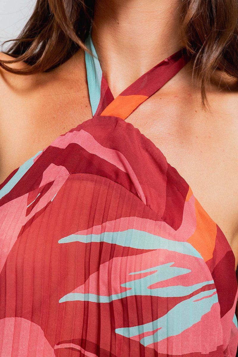 Пляжное платье от колумбийского бренда Cosita Linda. Изящное, с нежным струящимся силуэтом, открытой спиной и бретелью через шею. Плиссировка добавляет эффект плавных движений. Легкость ткани делает его идеальным для вечерних прогулок. Элегантный и утонченный дизайн подходит для отдыха и особых случаев.