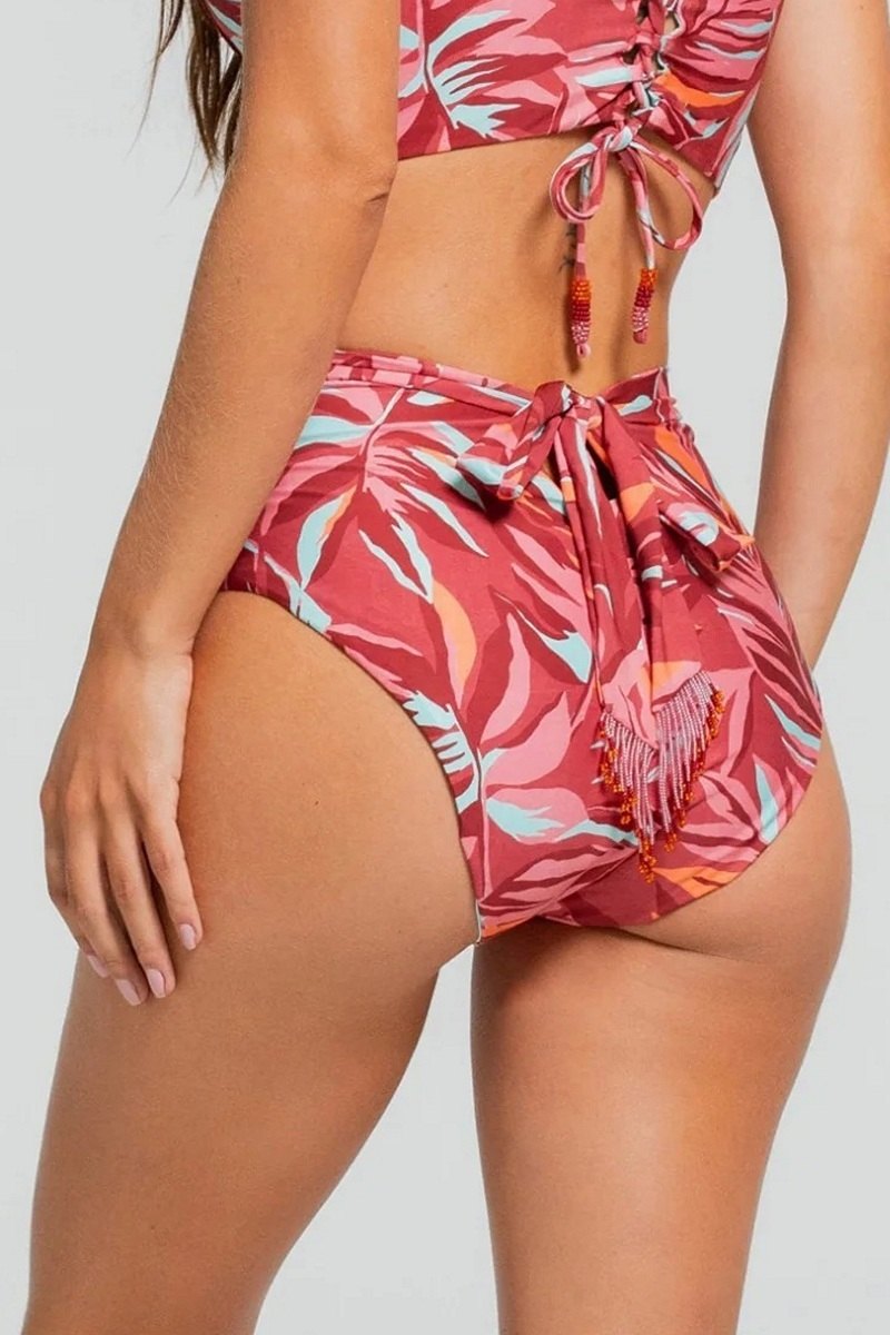Купальные трусы от колумбийского бренда Cosita Linda. Модель с высокой талией создана с применением традиционных ремесленных методов. Украшена ручной вышивкой и завязками. Крой подчеркивает женственный силуэт.